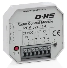 Das Funk-Empfangsmodul RCM 024-11-U kann in Verbindung mit einer D+H Fernbedienung, dem Funk-Sendemodul RCT 003-11-U oder dem Funk-Regenmelder REM 801-RC an bis zu 2 Lüftungsgruppen eingesetzt werden.