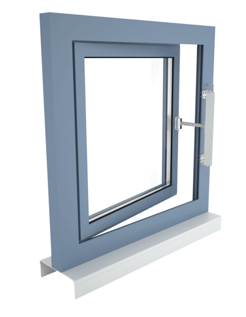 Einwärts öffnende Fassadenfenster, Antriebsmontage auf dem Fensterrahmen