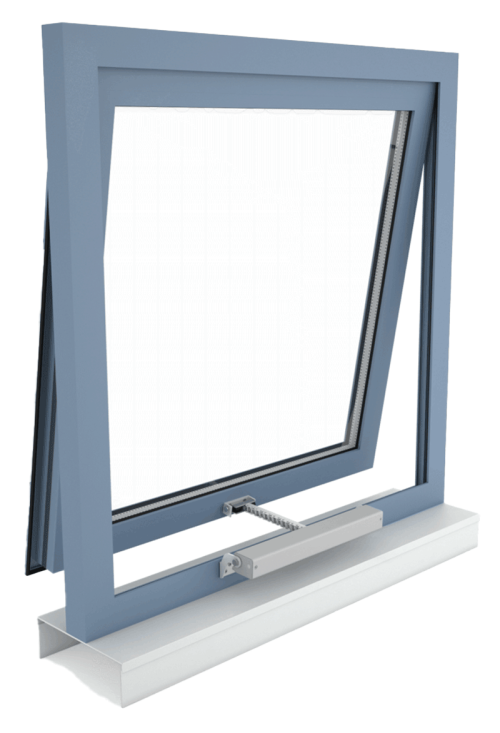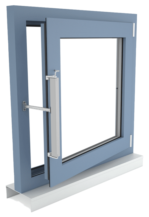 Auswärts öffnende Fassadenfenster, Antriebsmontage auf dem Fensterrahmen