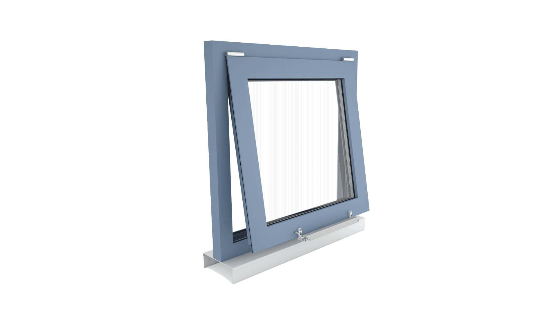 RWA Klappflügel-Fassadenfenster, ein oder auswärts öffnend.