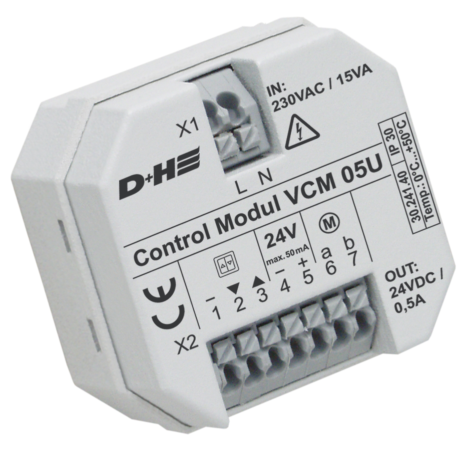 Die Lüftungszentrale VCM 05U wurde in minimaler Baugröße speziell für den Einsatz in einzelnen Räumen oder Wintergärten konzipiert. Die VCM 05U kann in Abzweigdosen, dezentral eingesetzt werden und verringert somit Montage und Materialaufwand. Mit dem großen D+H Zubehörangebot können diverse Funktionen hinzugefügt werden, z. B. Wetterautomatik und Raumtemperaturregelung. Es besteht die Möglichkeit, mehrere Lüftungszentralen zu koppeln, um eine Zentralschaltung zu realisieren, z. B. Schließen bei Wind oder Regen bzw. zeitgesteuertes Lüften.